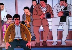一方、帰宅した一徹をカメラのフラッシュが襲う。